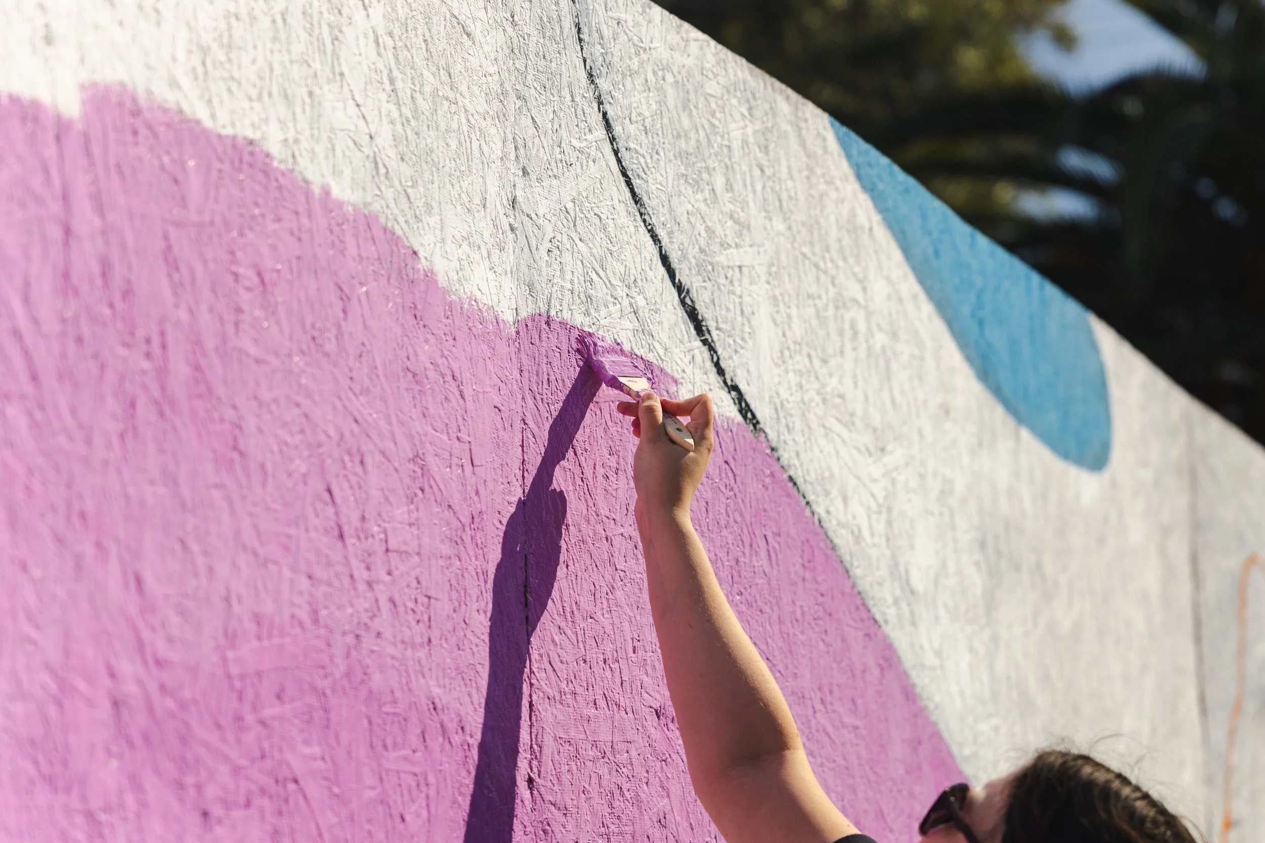 Over 40 volunteers came together to paint Sasha’s design on the fence.
