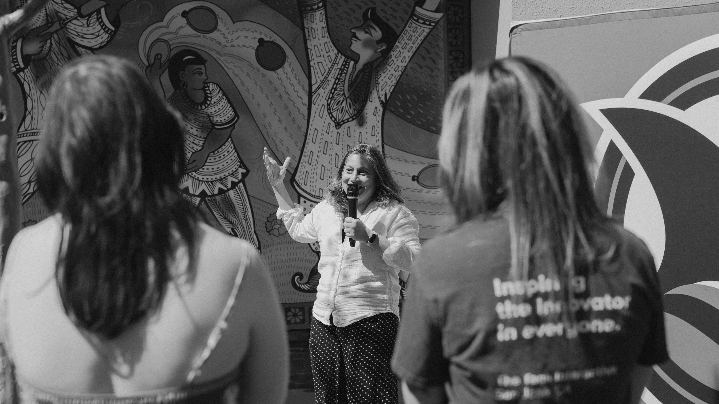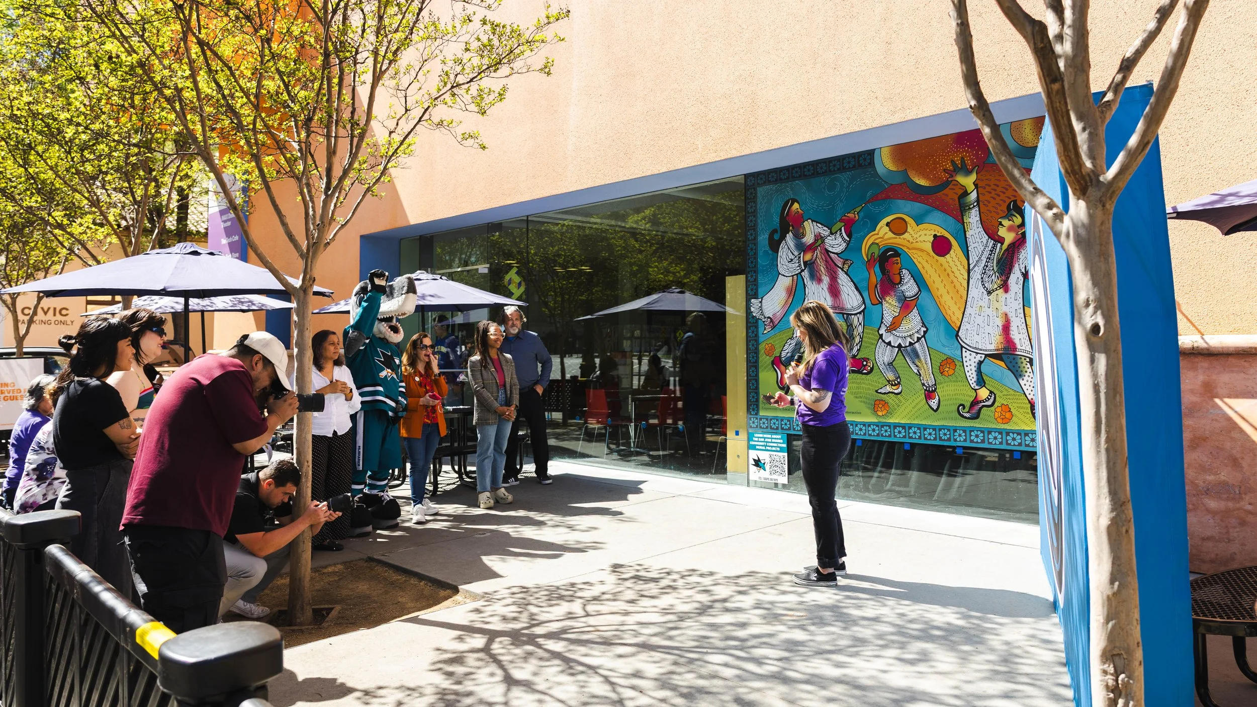 To celebrate Holi, Local Color identified and commissioned artist Suhita Shirodkar to design this vinyl mural at The Tech Interactive.